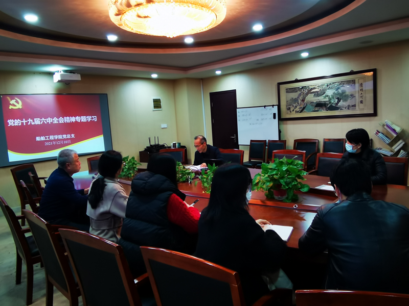 根据学院党总支中心组学习计划安排,2021年12月10日下午,船舶工程学院党总支在学院会议室组织了党总支中心组理论学习,专题学习党的十九届六中全会精神和省第十四次党代会精神。