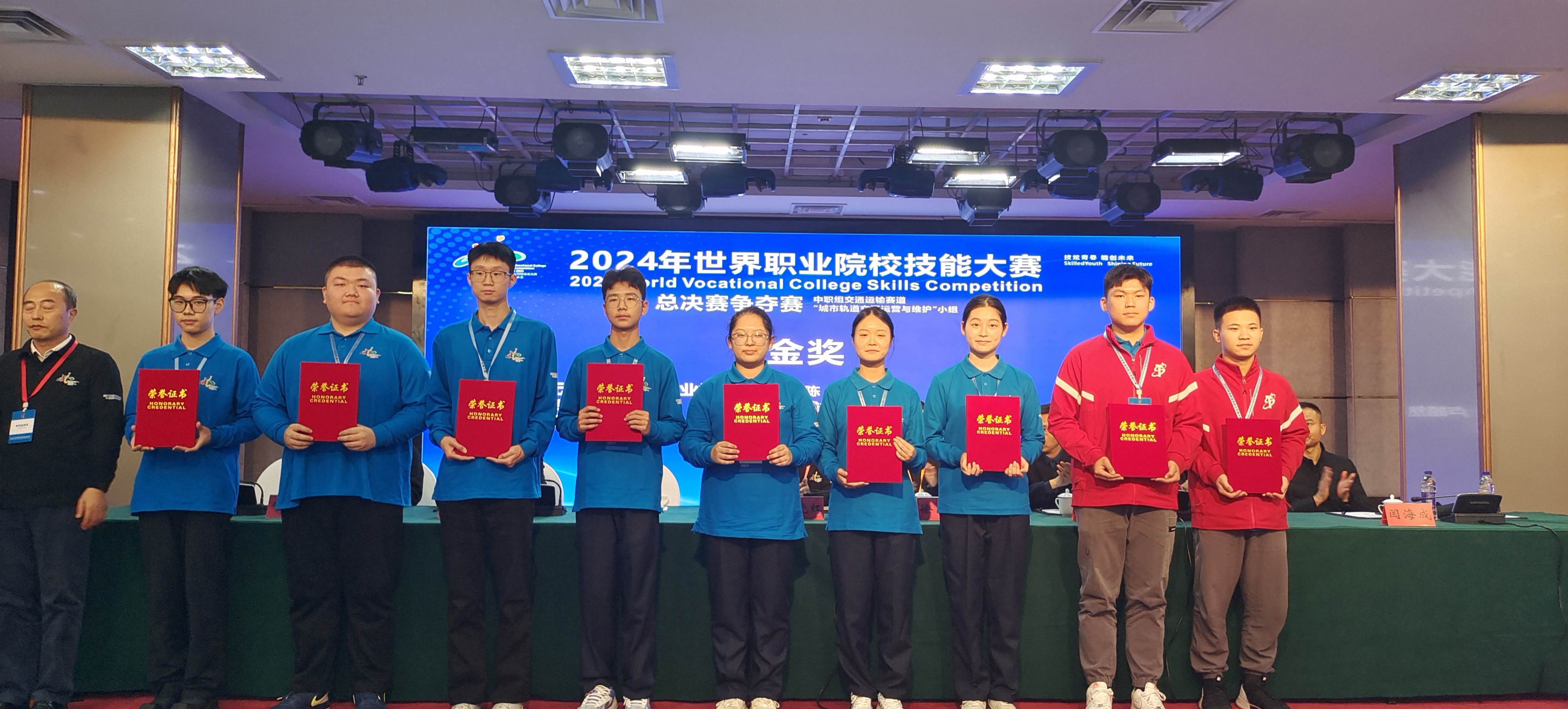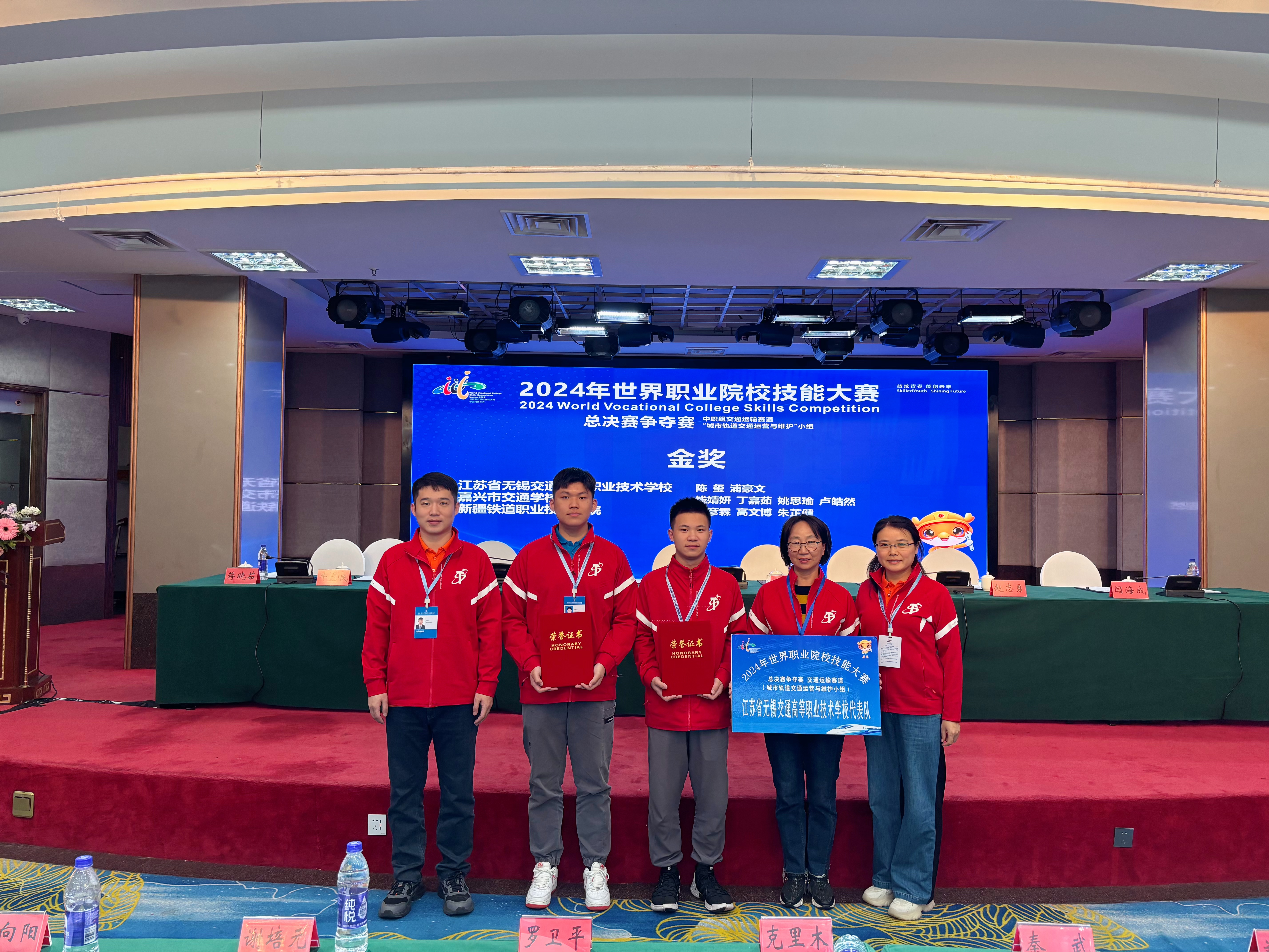 1025-29日,在新疆铁道职业技术学院举行的2024年世界职业院校技能大赛总决赛争夺赛中职组交通运输赛道“城市轨道交通运营与维护”小组赛项中,陈玺和浦豪文组建的学生团队,凭借扎实的专业技能和出色的创新能力,在众多参赛选手中脱颖而出,获得金奖,李俊、沈加仁获“优秀指导教师”称号,实现了学校在该赛项的历史性突破。