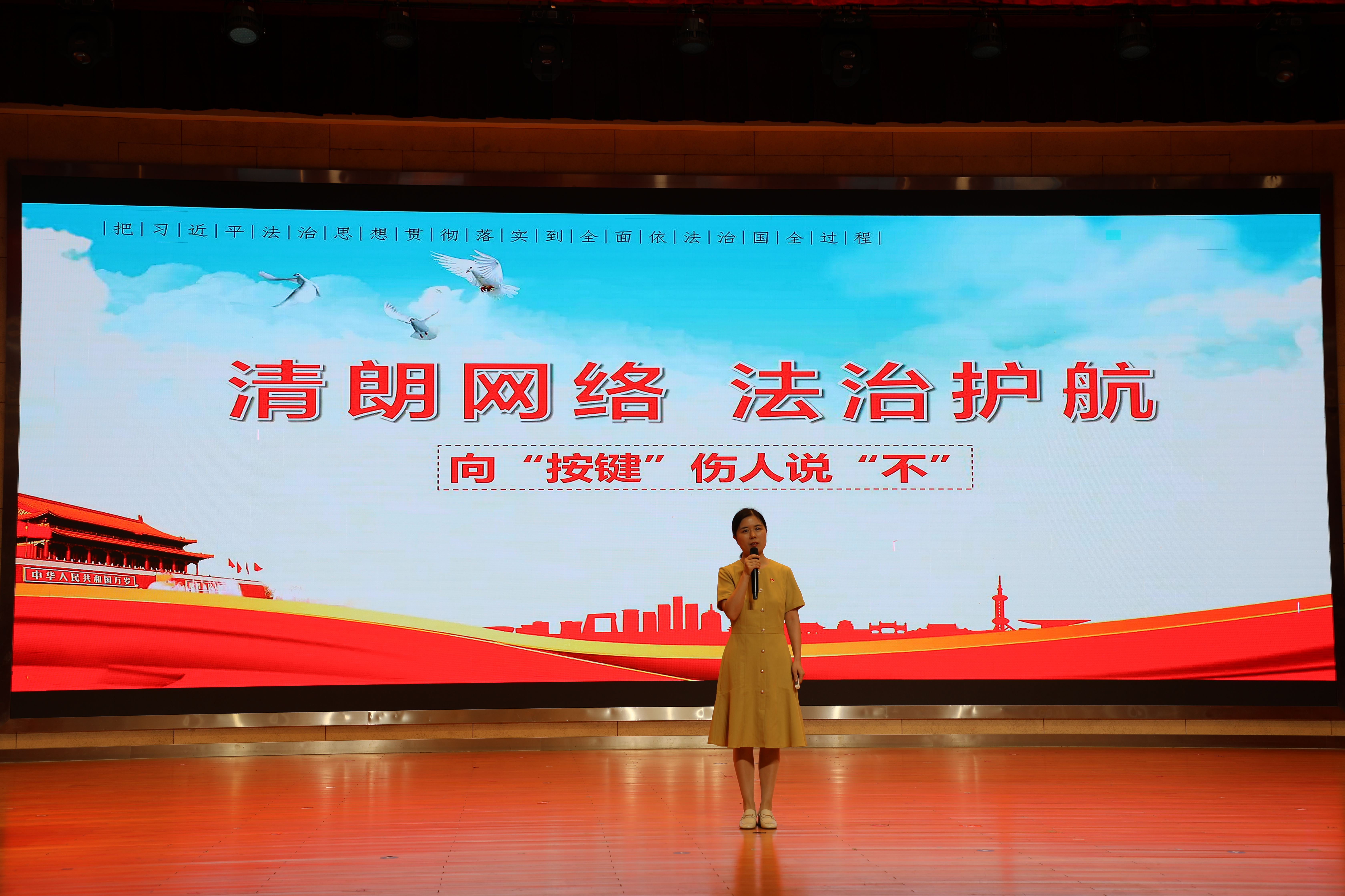 开展式上,与会领导一同观摩了荣获全国法治课教师与法治副校长微课比赛二等奖的聂婷婷老师的法治教育微课堂展示。