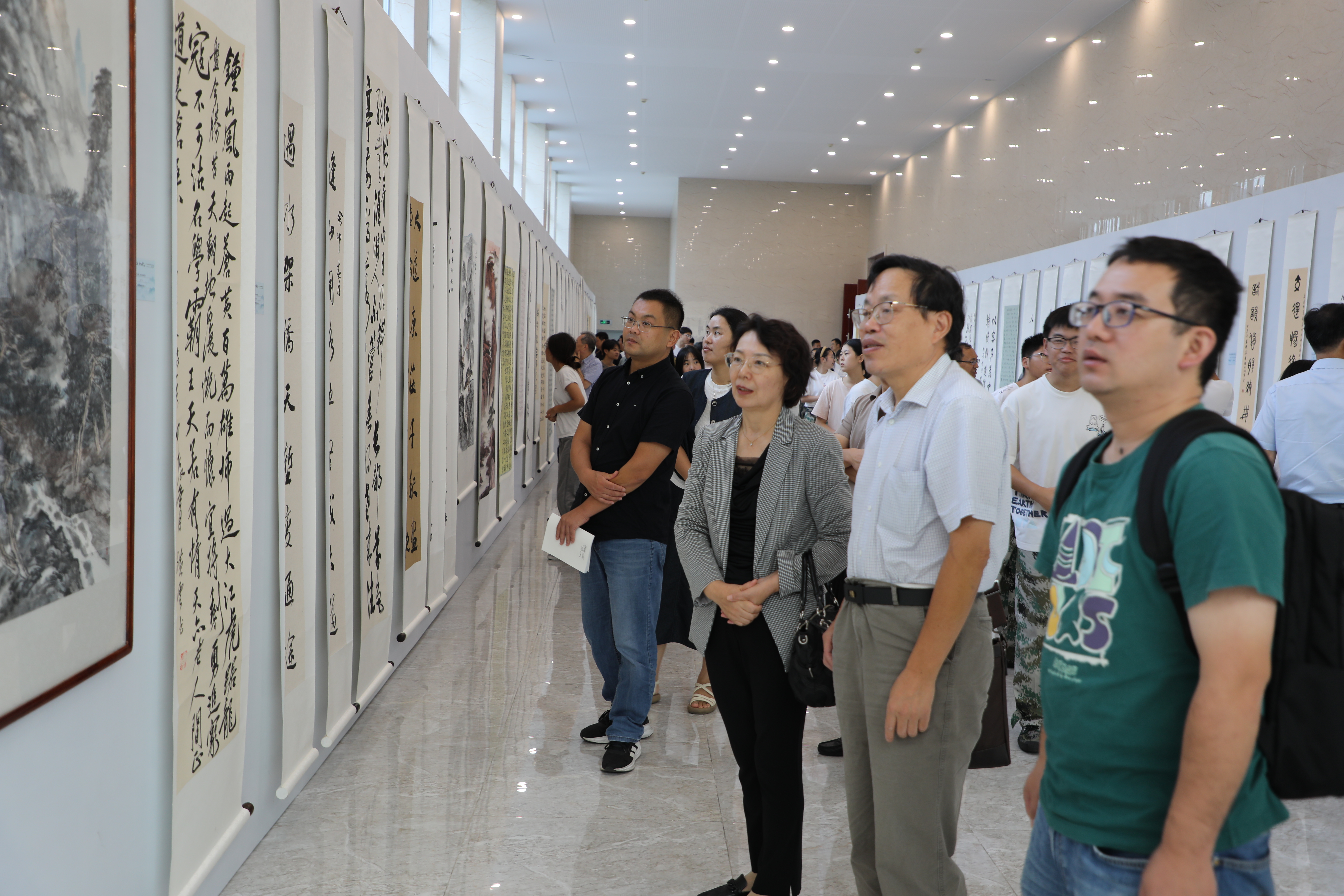 随后,与会领导和嘉宾、师生代表共同参观了“艺术进校园·歌唱新时代”全省交通运输系统书画精品展,近距离感受书画艺术的独特魅力。